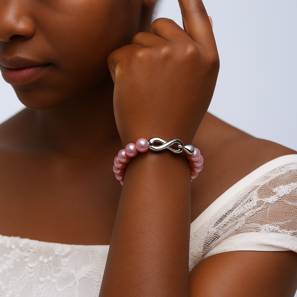 This bracelet showcases 8-9 mm freshwater pearls in shades of white, pink, and purple, elegantly arranged on an 18cm sterling silver chain. Crafted from high-quality 925 silver, its smooth, round pearls provide a refined and graceful accessory suitable for both special occasions and daily wear. Made with women in mind, it delivers a chic and classic style you’ll appreciate.