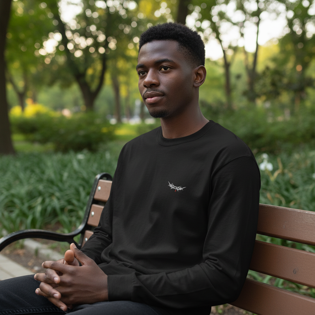This "King's Crown" long-sleeve shirt represents His love with the powerful crown of thorns, reminding us of the price paid for our complete redemption. This men's Champion long sleeve shirt features soft 100% cotton fabric and a relaxed fit for comfortable wear alone or layered. It includes ribbed cuffs, a taped crew neck, and the Champion "C" logo on the left sleeve, combining style and ease for your everyday wardrobe.