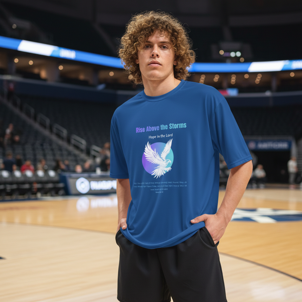 This God Speak's "Soar" crew neck T-Shirt reminds us that our hope in the Lord makes us rise above the challenges of life and even soar. This performance crew neck delivers comfort and durability for active lifestyles. Crafted from premium 100% polyester with moisture-wicking technology, this unisex tee keeps you dry and confident through workouts, sports, and outdoor adventures. Features UPF44+ UV protection, odor resistance, and fade-resistant fabric with reinforced seams. The relaxed fit works for everyone. Made on demand and available in the US only.