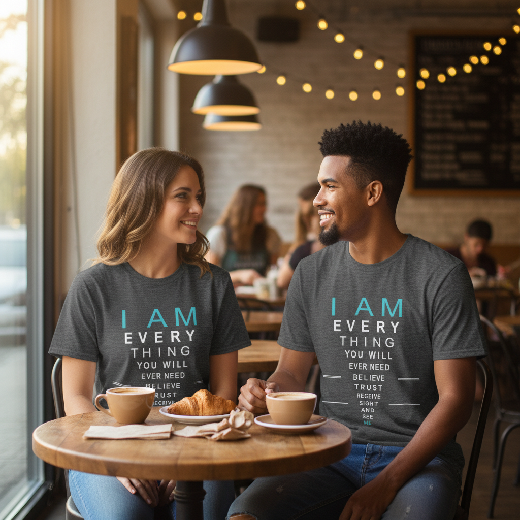 Where faith meets vision. Inspired by the iconic eye test chart, this unique design layers words of trust, clarity, and divine focus—reminding us that true vision begins by seeing through the eyes of faith. Inspired by scripture 2 Corinthians 5:7 — “For we walk by faith, not by sight.” Soft, sustainable unisex tee crafted from organic cotton with reinforced seams built to last. Made-to-order to reduce waste. Perfect for those seeking comfort with purpose.
