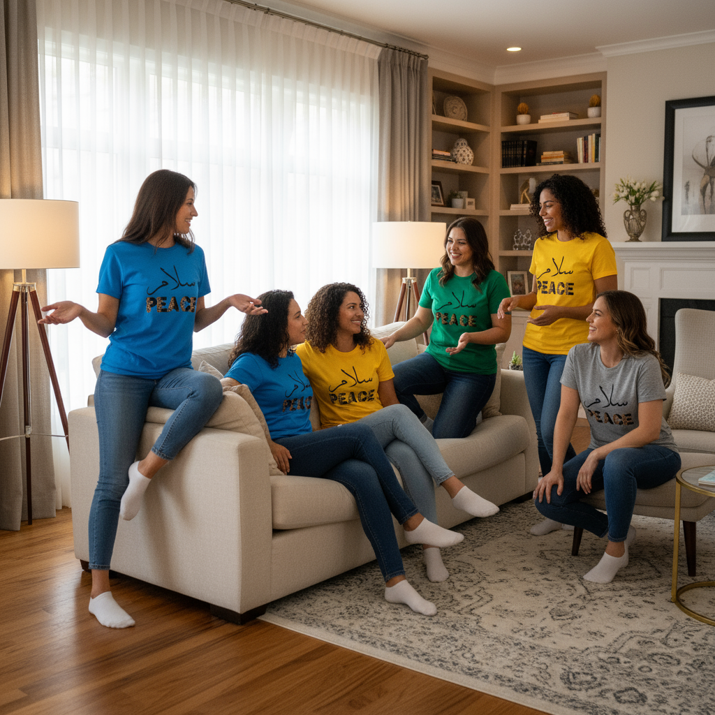 This woman's relaxed tee offers soft comfort with a bold "Peace" design in leopard print, paired with the Arabic word سلام (Salaam). It reflects a hopeful message from Matthew 5:9, perfect for everyday wear and expressing a spirit of peace and faith.